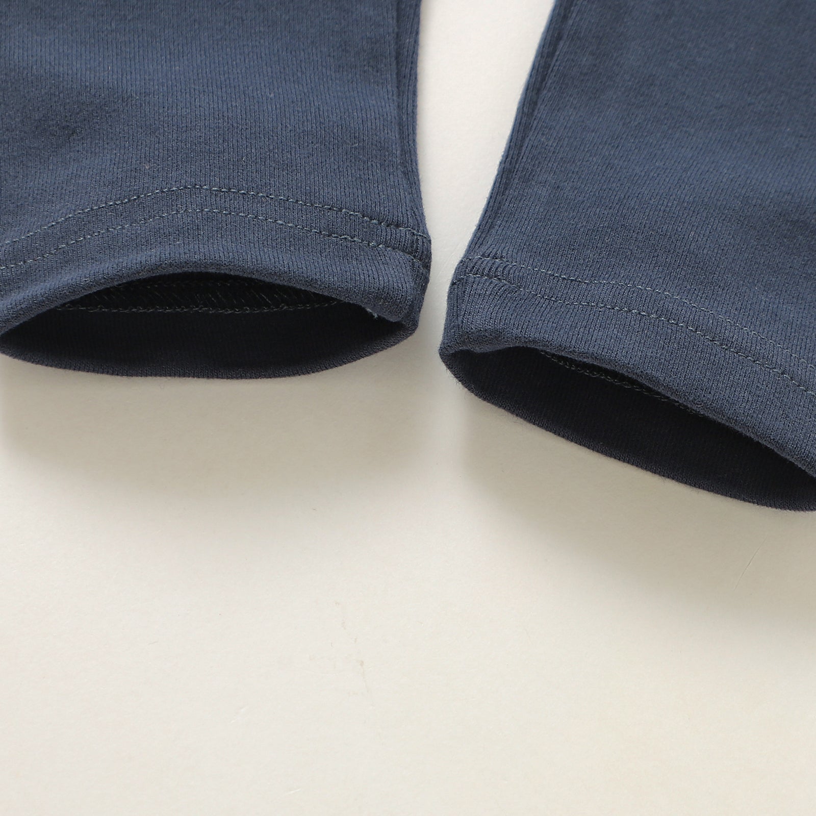 Crafted from 95% certified organic cotton with 5% spandex for the perfect amount of stretch. The ribbed texture offers a premium feel while maintaining the soft, gentle touch against delicate skin. Designed with a comfortable fit that allows for growth and movement.