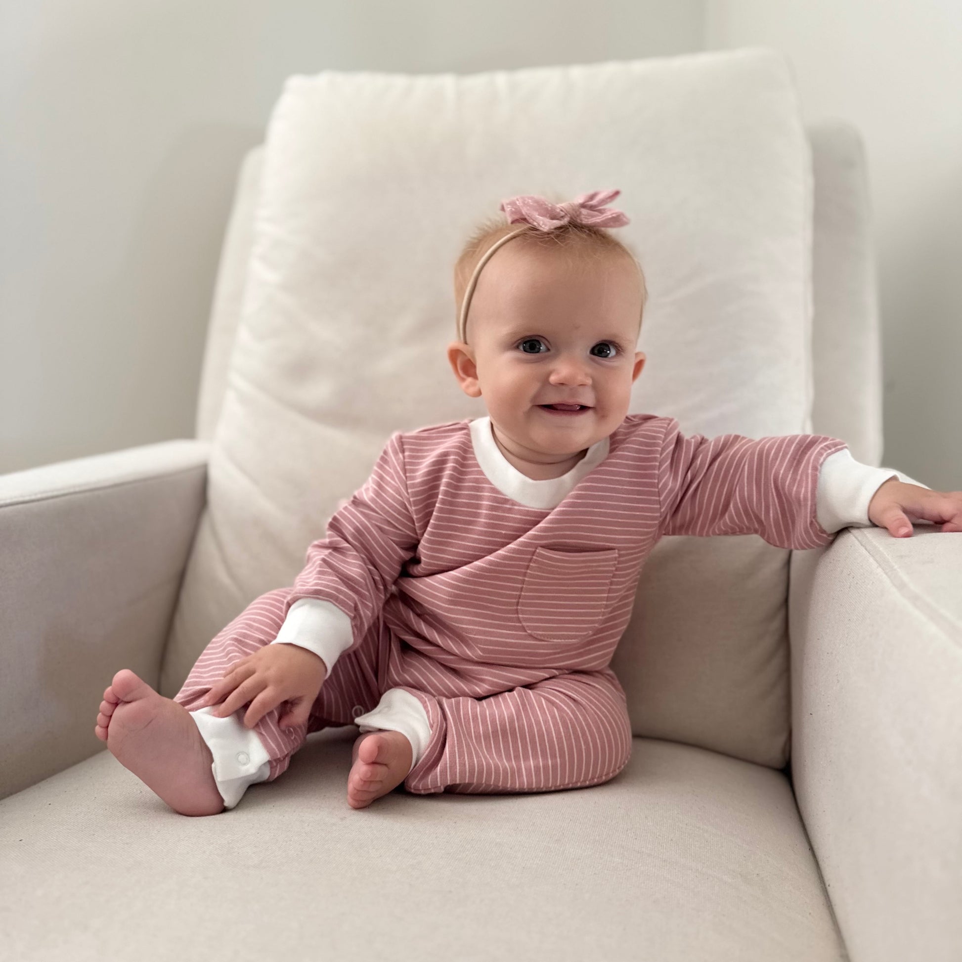 The Lucca Jumper brings simplicity to everyday comfort. With its distinctive horizontal stripes and contrast trim detailing, this heavyweight organic cotton jumper offers practical warmth with a touch of modern style. Perfect for layering or wearing on its own, it transitions effortlessly from playdates to family outings while maintaining its premium look wash after wash.
