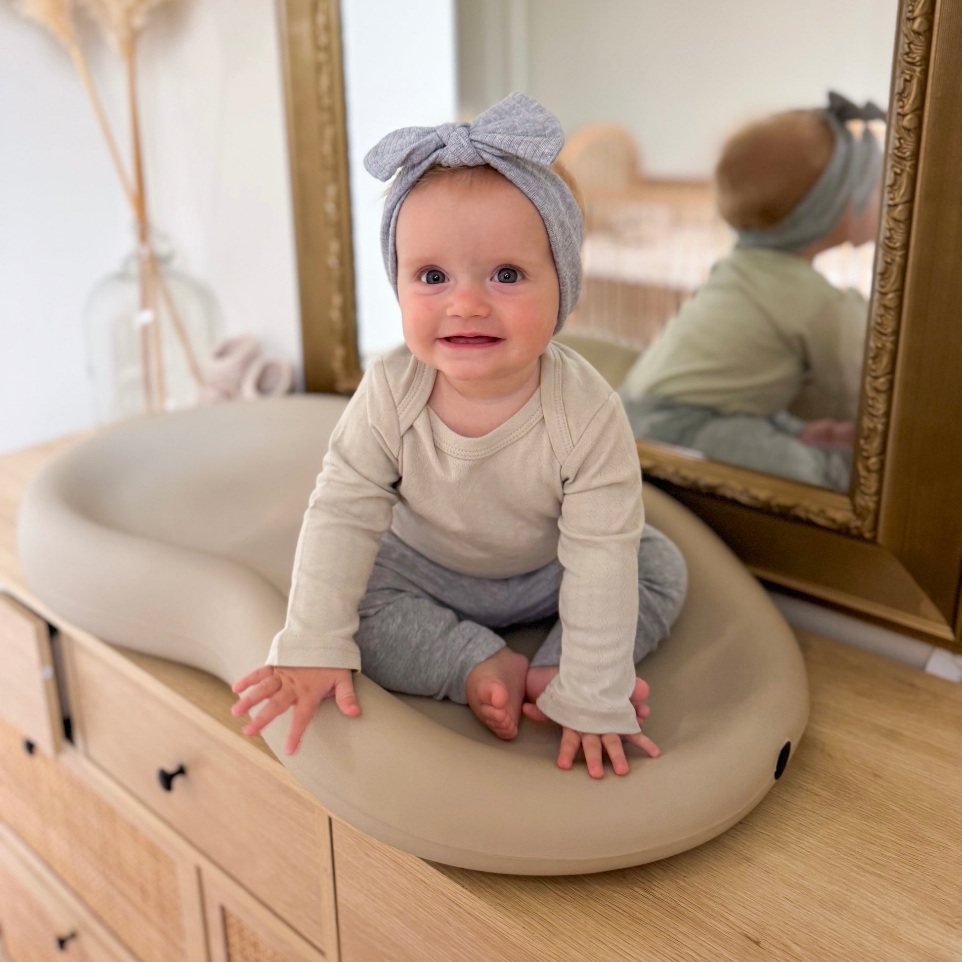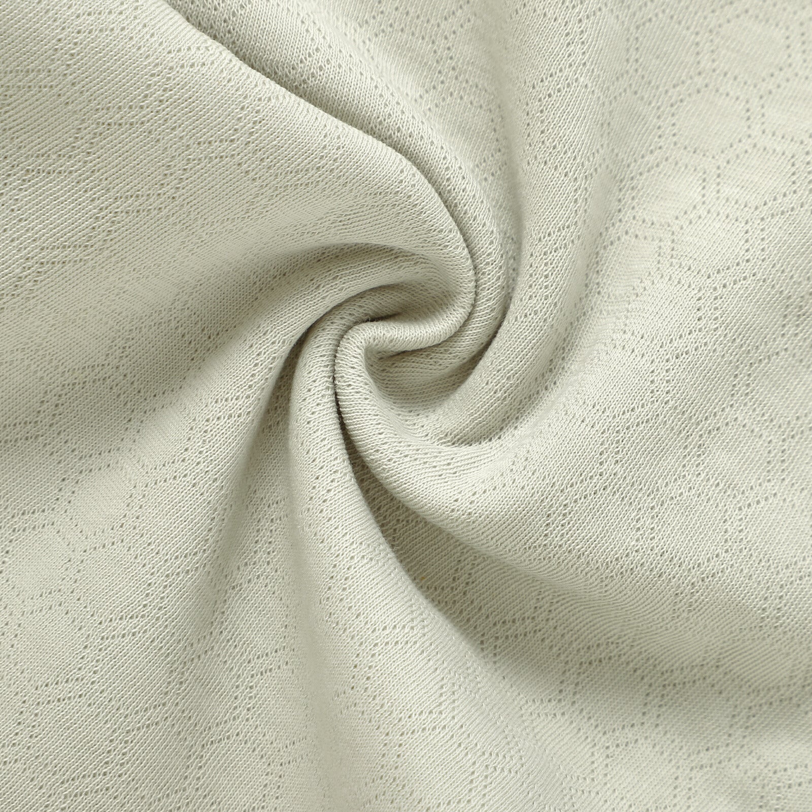Made from 100% certified organic cotton in honeycomb jacquard weave. This specialized fabric technique creates natural breathability while maintaining the soft, gentle feel against delicate skin.