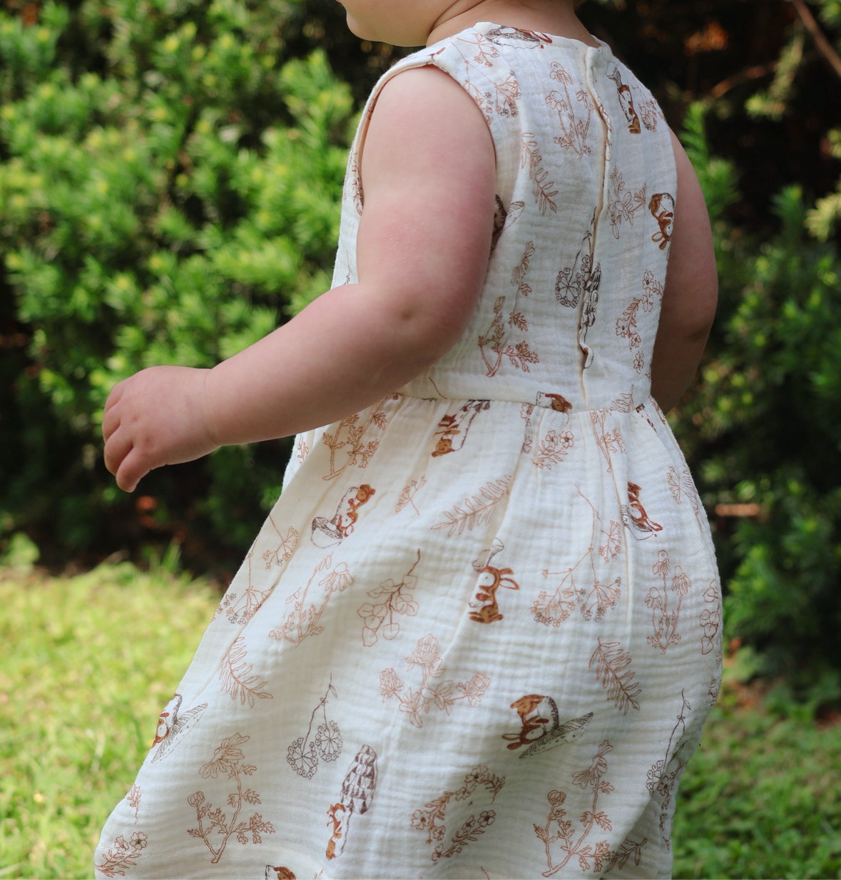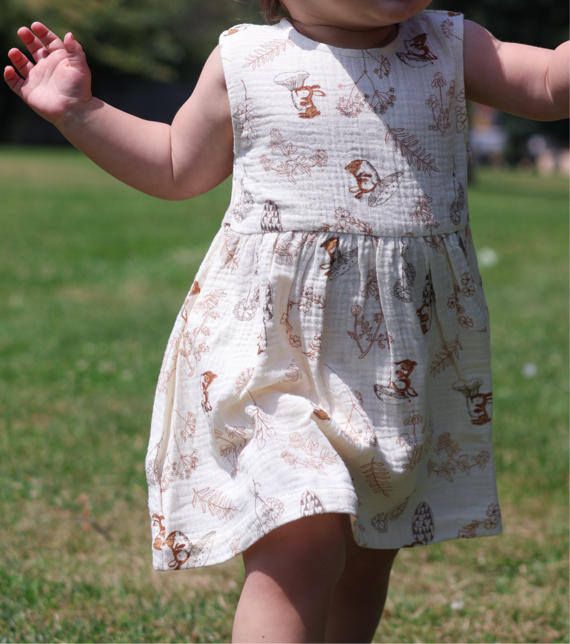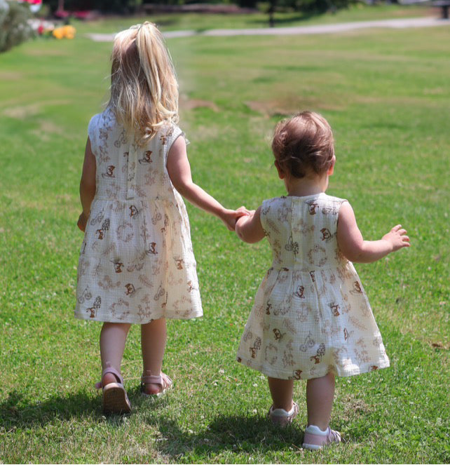 The Vienna Dress brings whimsical charm to your little one's wardrobe with its delightful woodland print. Made from 100% organic cotton muslin, this dress combines storytelling with comfort for everyday wear. With its timeless design and enchanting pattern, it transitions effortlessly from playdates to special occasions.