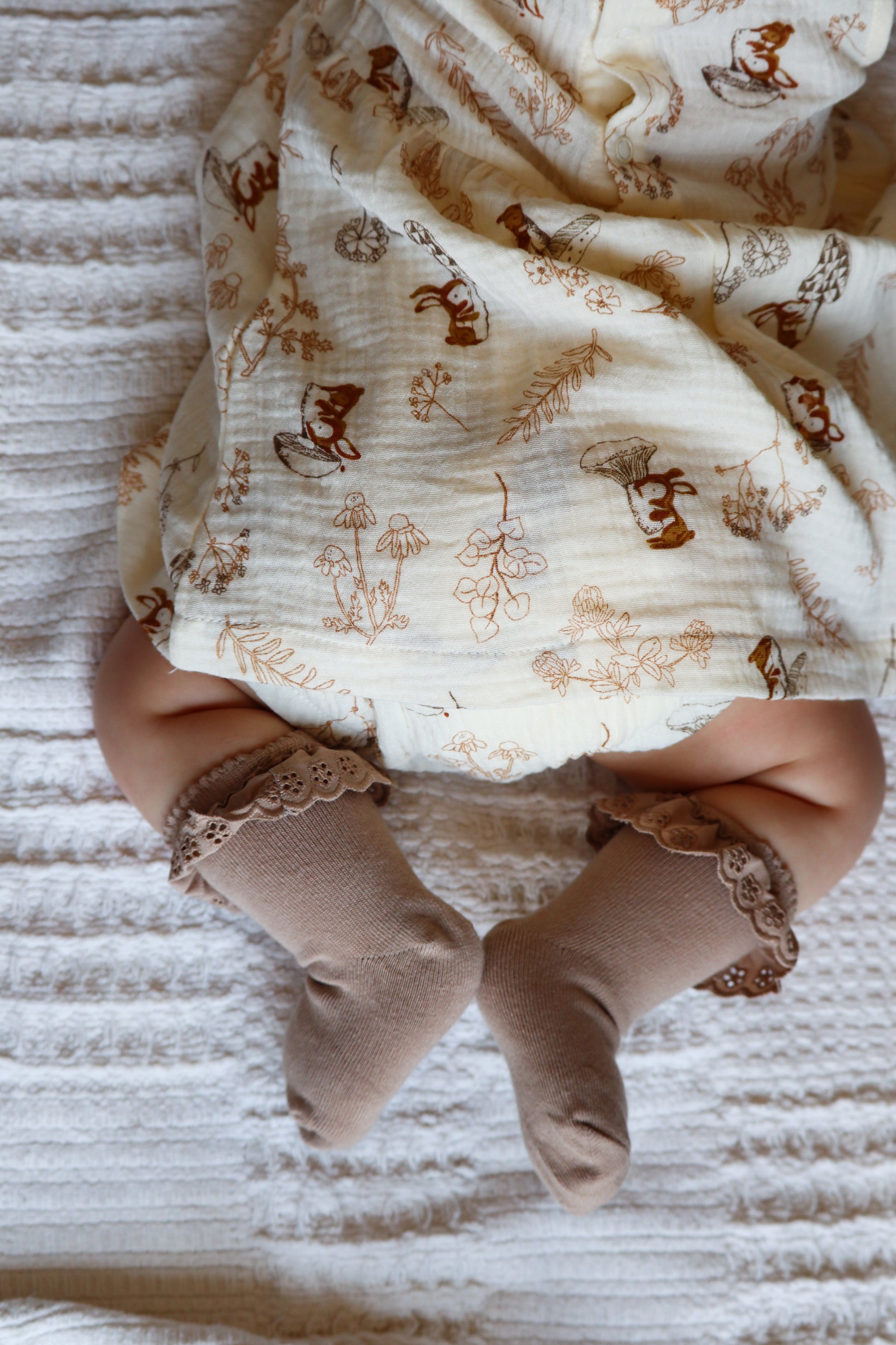 - Lightweight muslin fabric with subtle texture